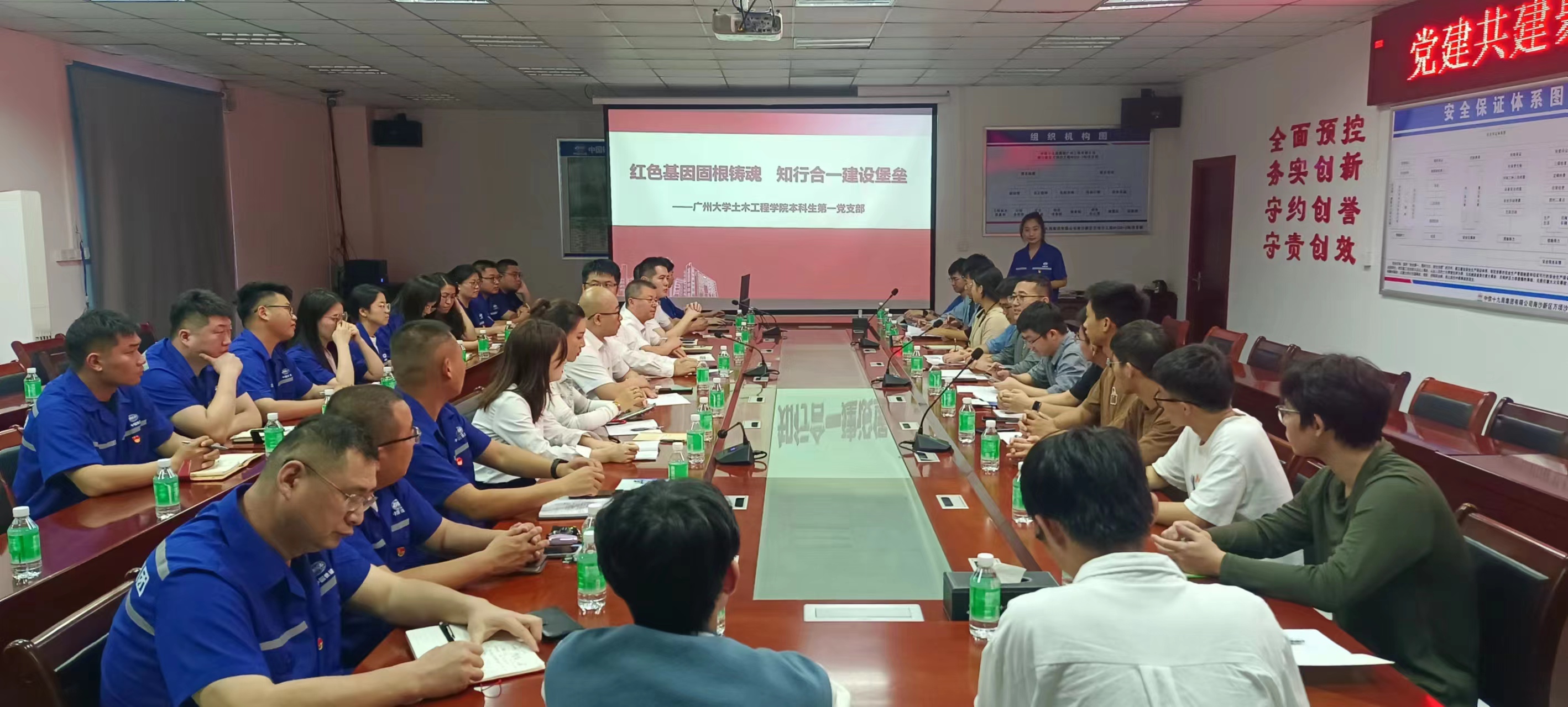 在参观结束后,中铁建十九局广州公司第二项目管理部万顷沙项目党支部与必赢贵宾会3003am本科生第一党支部开展了“学以致用,知行合一——党建引领校企实现强强联合”座谈会。