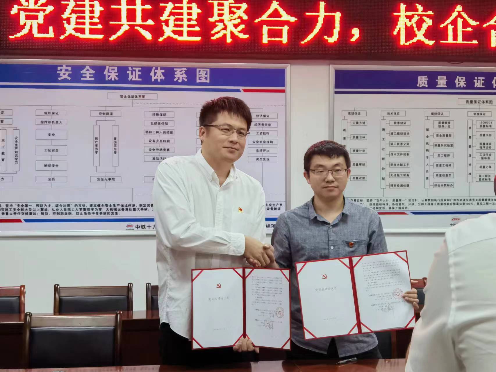 会上,中铁建十九局广州公司第二项目管理部万顷沙项目党支部与必赢贵宾会3003am本科生第一党支部签订了党建共建协议,共同推进企业双方在党建工作研讨、校企深度合作、人才培养等方面创新发展、共建共赢。