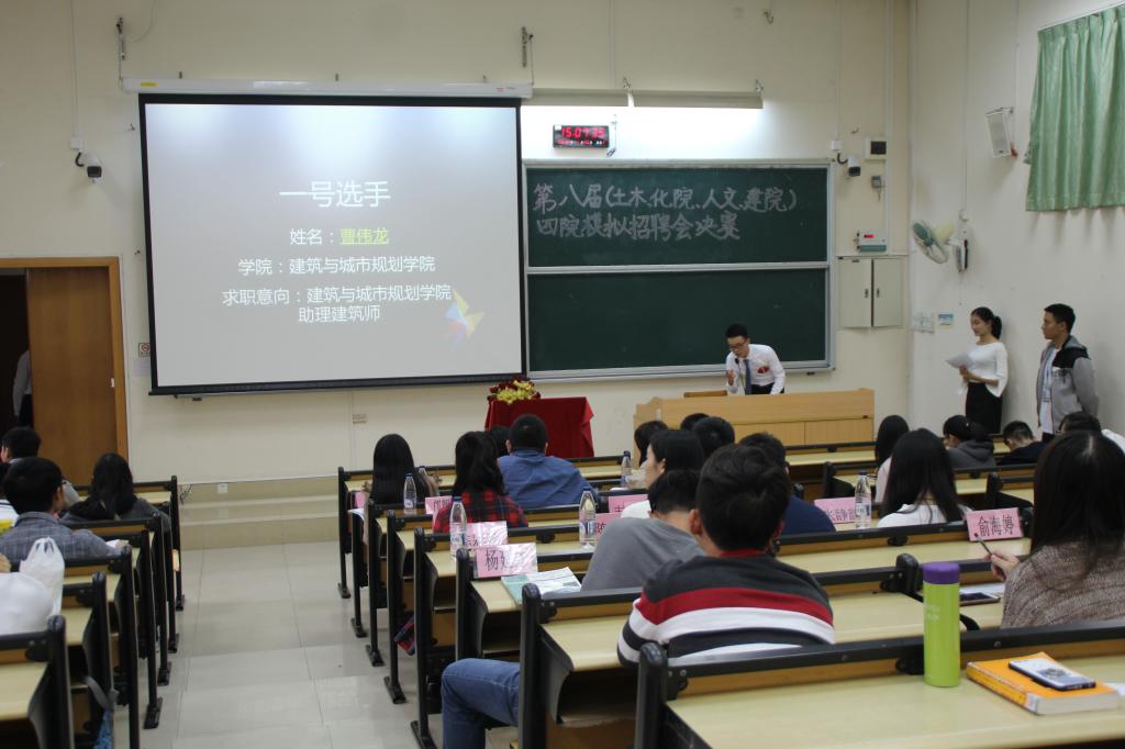 为进一步推动我系学生就业指导工作,帮助学生适应就业形势、熟悉就业政策、转变就业观念、增强择业意识,促进学生就业,11月29日下午14:30-17:30,由必赢贵宾会3003am第八届必赢贵宾会3003am、化学化工学院、人文学院、建筑学院联合举办的四院联合模拟招聘会(决赛)在文清楼407教室成功举行。