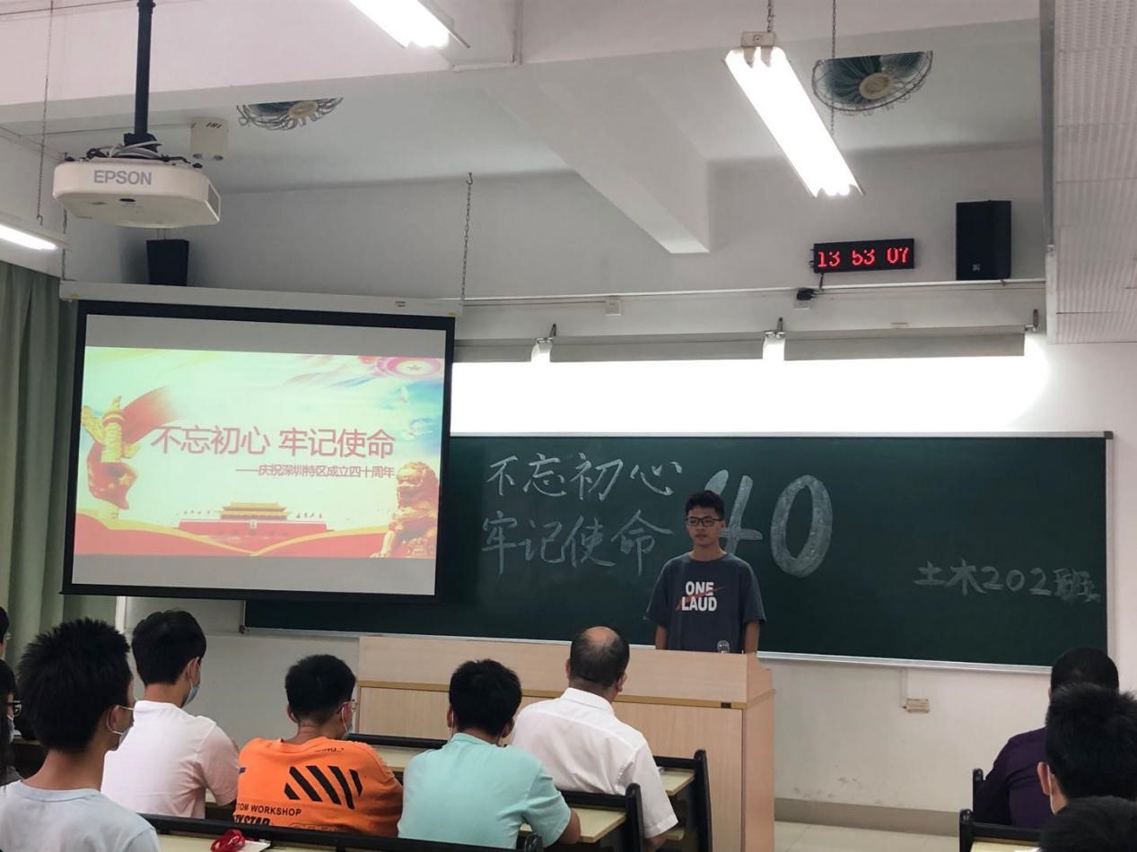 师生共同回顾了深圳特区40年来的发展变化,深圳籍的同学分享了他们的切身感受,大家都为深圳特区、广东省、祖国的快速发展感到自豪。